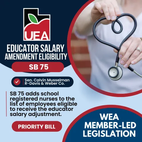 Lawmakers also heard an appropriations request tied to UEA priority S.B. 75 Educator Salary Adjustment (Sen. Calvin Musselman R-Weber County) to include school nurses in the salary adjustment.